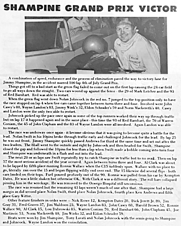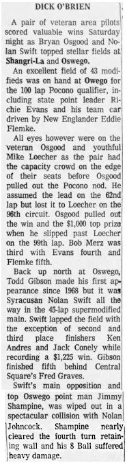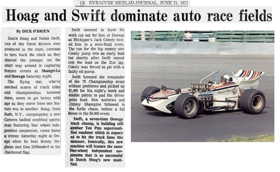 Week by week Oswego Supermodified Top Fives, 1968 - 1973