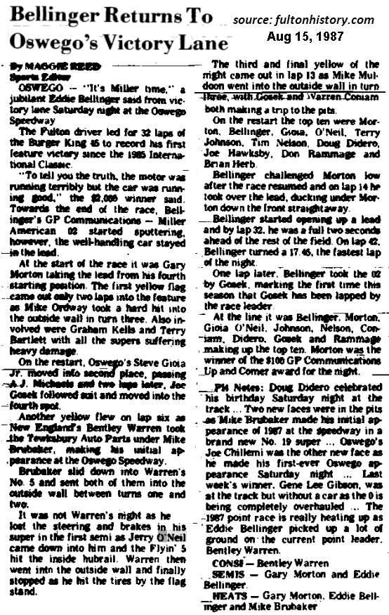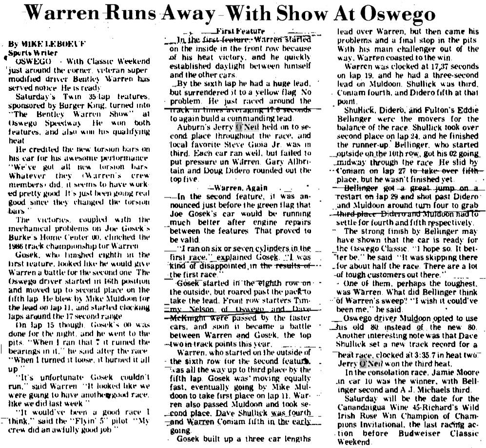 Aug 31 | 200 | Warren | Gioia Jr | Didero | Coniam | Shullick | + |