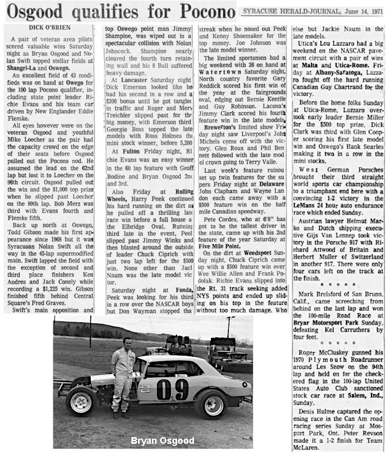 - Ollie Silva with a top 5 in the 1970 Oswego Modified 150
