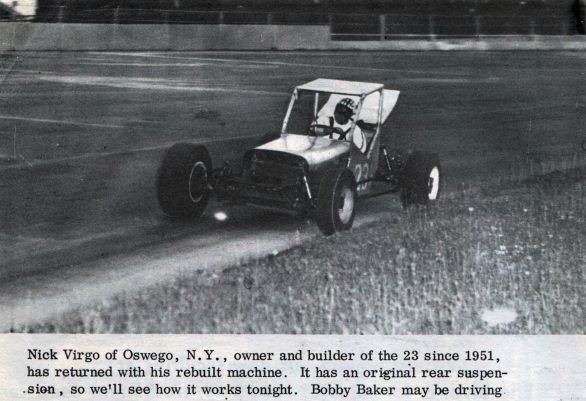 On Aug 26th 1967, Bobby Baker finished 10th in Nick Virgo's #23.It was the only feature appearance for this car that year and possibly Baker's final race at Oswego.