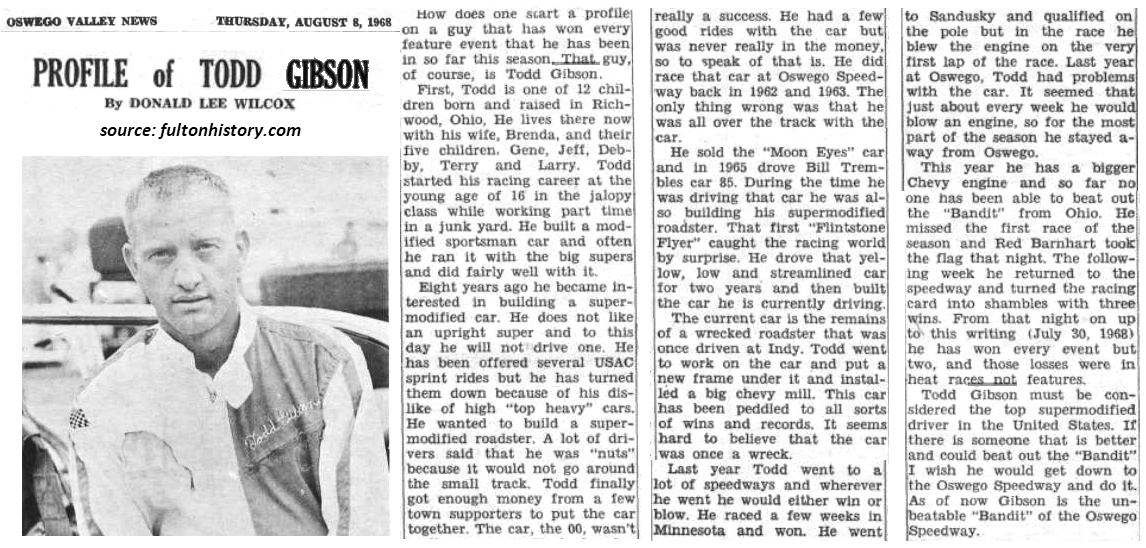 ![]() 1964 Todd finished 6th in the Oswego Classic that year after qualifying through a heat |