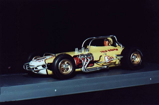 In 1967, Todd purchased a former Indy roadster. He made a lot of modifications by moving the driveline and shortening the wheel base. He then brought it to Oswego Speedway. In only his second start with the car he won the feature. And in 1968 he simply destroyed the competition. He won the track championship by winning thirteen features that year including an incredible nine in a row. He was the odds on favorite to win the Oswego Classic that year and set the track record in qualifying. But, it was not to be as during the race, someone blew a motor and he hit the oil and went into the wall.