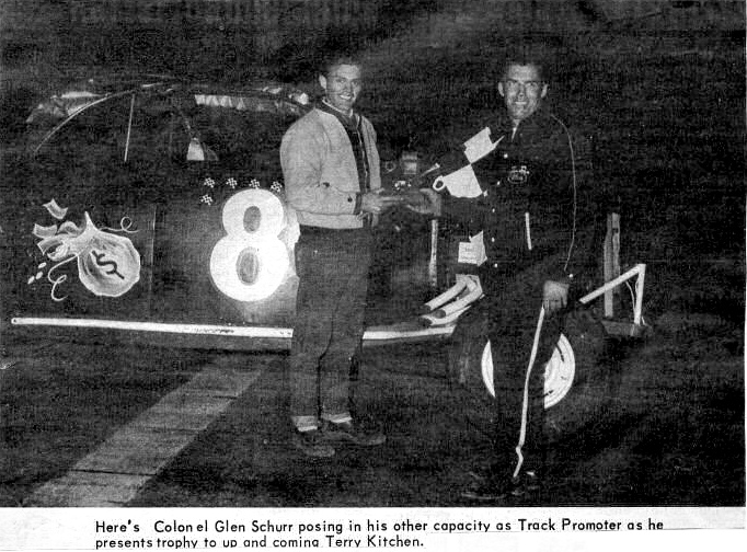 Note the writing on the picture (written by a super-crazy kid at age 8, 42 years ago). Glenn's nickname was "Colonel" and he was my father's favourite supermodified driver. My brother's was "Smilin" Jack Greedy, mine was "Leadfoot" Harvey Lennox. Harvey is still alive and well. He retired from supermodified racing in 1972. I spoke to him at the Cayuga ISMA event this summer. My brother was astonished that I still recognized him after so many years. It was cool telling him that he was my boyhood racing hero 40 years ago.