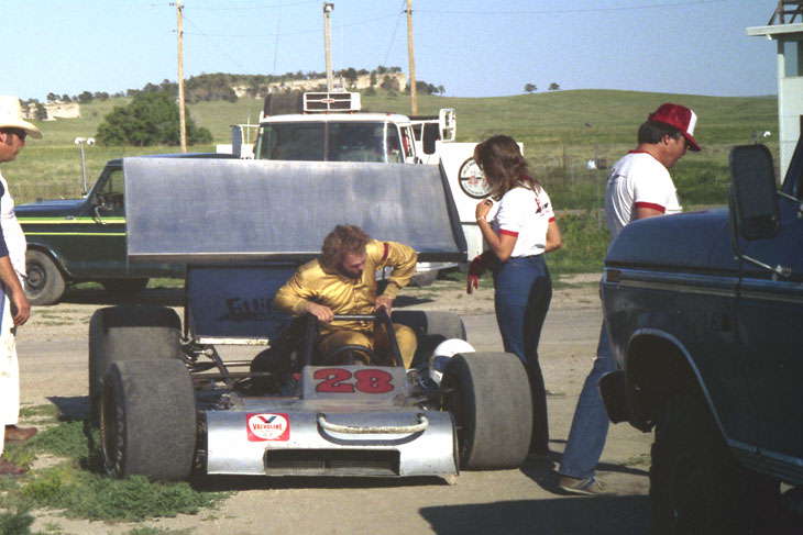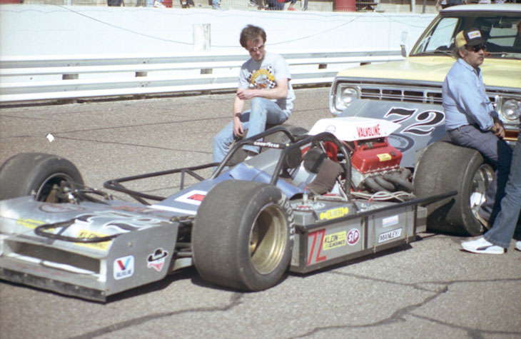 " (ABOVE) Though Chet Fillip is from Ozona, TX, I remember him making the "tow up" to Colorado a couple of times. The first time I saw him race, was at Englewood Speedway about 1976, when the track hosted The Olympia Beer challenge for the Supermodifieds. Chet brought (possibly) the only rear engine supermodified of the time & was the main topic of conversation among the fans in the stands. Here, he is hot lapping his well known rear engine (Ford powered?) Supermodified at Colorado Springs International Speedway about 1982ish prior to an open comp, end of year race. " ---- Rick Wasilko