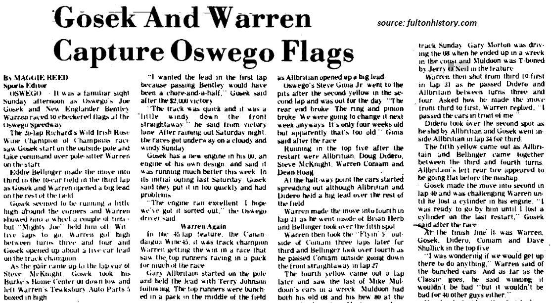 Aug 31 | 200 | Warren | Gioia Jr | Didero | Coniam | Shullick | + |