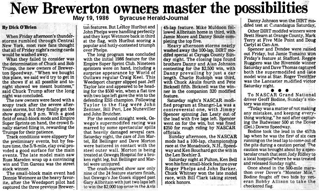 - Aug 03 1987 - Bodine didn’t forget how to race at Oswego